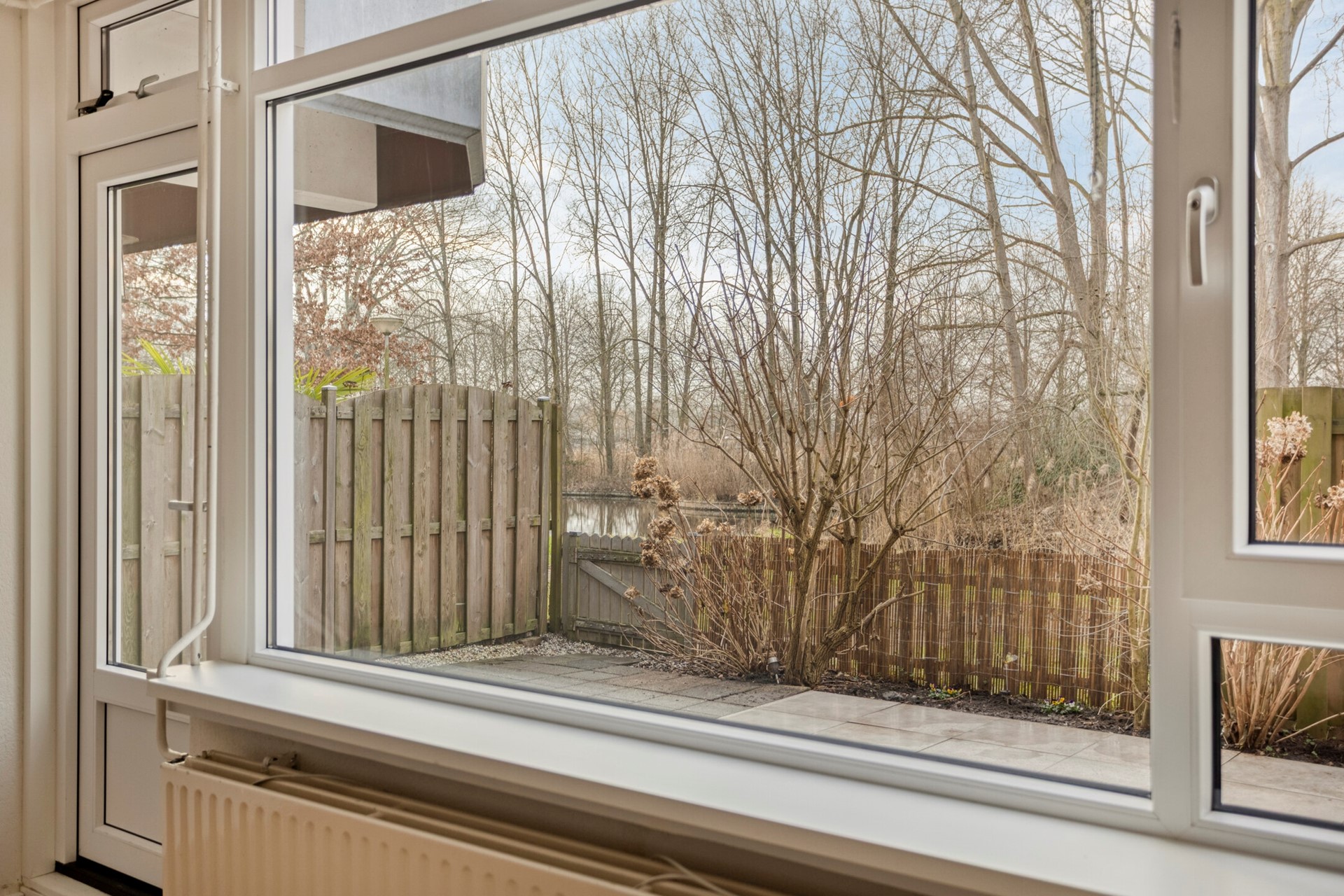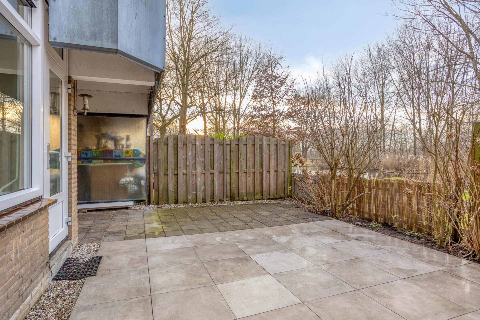 De zonnige tuin is liefst 45m2 groot en ligt op het westen dus zon verzekerd. De tuin is meer dan groot genoeg voor een ruime lounge-set waar je heerlijke zomeravonden kunt hebben met een glaasje wijn of een barbecue. Je hebt hier vrij uitzicht over het groen en water van het aangrenzende park! Daarnaast beschikt het appartement over een unieke achterom waardoor je via dit pad altijd direct toegang hebt tot het wandelpad van het park.